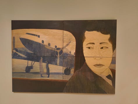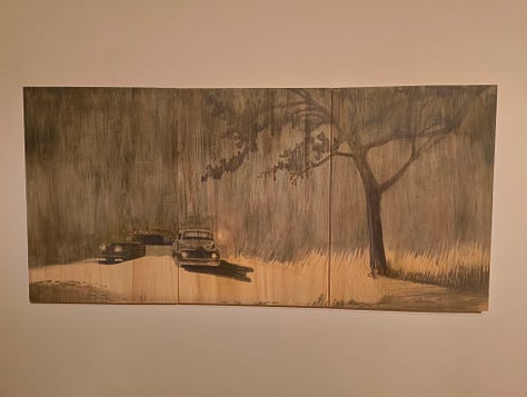 The whole thing spins out of an imaginary twentieth-century town, loosely based on Sunstrum grandmother’s home in Botswana. But it speaks to her experiences of living in the United States and Asia too. Alongside the colonial themes, plenty of 20th century Hollywood is present in the film noir detectives, propeller aircraft, and the courtroom scenes with a hint of ‘Dancer in the Dark’ about them. There are also heady echoes of contemporary Asian cinema, like the soft lighting of Wong Kar Wai’s movies, or the eerie shots of cars at night, redolent of young Chinese director Bi Gan (pur-lease watch ‘Kaili Blues’ or ‘Long Day's Journey into Night’ if you don’t know what I’m talking about).