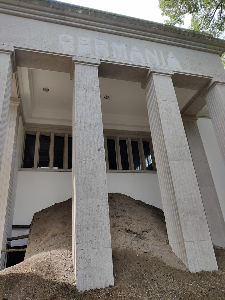 This had all the queues. Ernst Haiger’s 1938 building is burdened by both the context and the style in which it was built. To put it perhaps glibly, the German effort each biennale is often basically a version of ‘how do we make this space NOT Nazi anymore?’. The main pavilion features the work of Yael Bartana and theatre and opera director Ersan Mondtag. Bartana’s ‘Light to the Nations’ is a spaceship installation and video work blending futuristic technology with Jewish mystical doctrine. It wasn’t the main event for me, which involved a further queue (unless you’re Adrien Brody, who was whisked straight in) for Mondtag’s stunning installation and performance. Inspired by his grandfather, Hasan Aygün, it tells a heart-wrenching domestic tale of a Turkish immigrant worker, employed by the Eternit asbestos factories, who died as a result of this work. Within the towering central house – built inside the pavilion and roughly daubed with soil from Anatolia – actors busy themselves with work or domestic tasks or just going to the toilet or lying on the floor. It might have been the lack of sleep or all the queues, but it was the most emotionally affecting piece I saw all week.