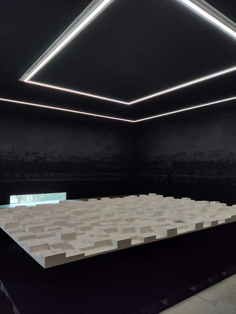 I said in my last post that this was kind of the Art Olympics, and the gold medal (well the Golden Lion) has gone to Australia for best national exhibition. This pavilion is quietly searing, a darkened look inside the country’s colonial past, which saw the artist draw an extensive family tree onto the black walls tracing his Kamilaroi and Bigambul relations back 65,000+ years. At the centre, sits a pool of water filled with stacks of printed coroners statements of Aboriginal deaths in state custody, testaments to the injustices wrought upon Australia’s First Nations peoples. Here’s all the stuff left out of ‘history’ brought back into the (gloomy) spotlight - kith and kin and sin.