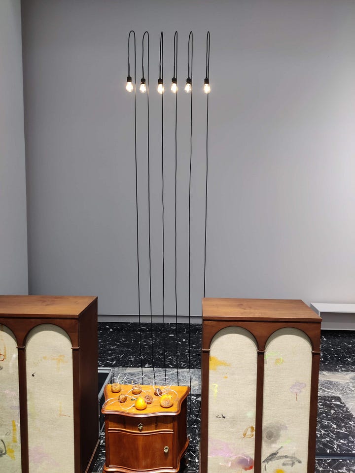 Here’s your dose of tutti frutti. Zesty bits from the greengrocers are used as batteries for the musical instruments and lights in Mohri’s intervention in the Japanese pavilion. You can hear the sweet sounds they make as they de-compose, geddit? There are also kinetic sculptures inspired by leaks in the Tokyo subway, which add to the slightly bonkers sense of fun, all accompanied by the sugary-sour whiff of an apple or two that have seen their best days.