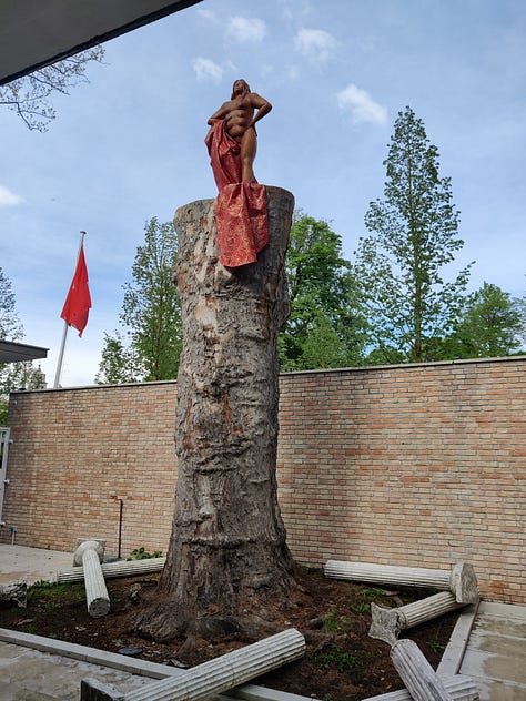 Overwhelmed? Okay, this is the final stop. Koo Jeong A has filled the Korean pavilion with a series of olfactory experiences (aka perfumes) which get blown out of a funky alien’s nostrils in the back room like he’s vaping. There are wooden möbius-shaped sculptures and carvings on the floor and the vibe is molto chill. There’s a cafe behind here with a nice view, and some lovely weird Taiwanese Irises in the flowerbeds. Breathe. It’s over, relax. Have a spritz.